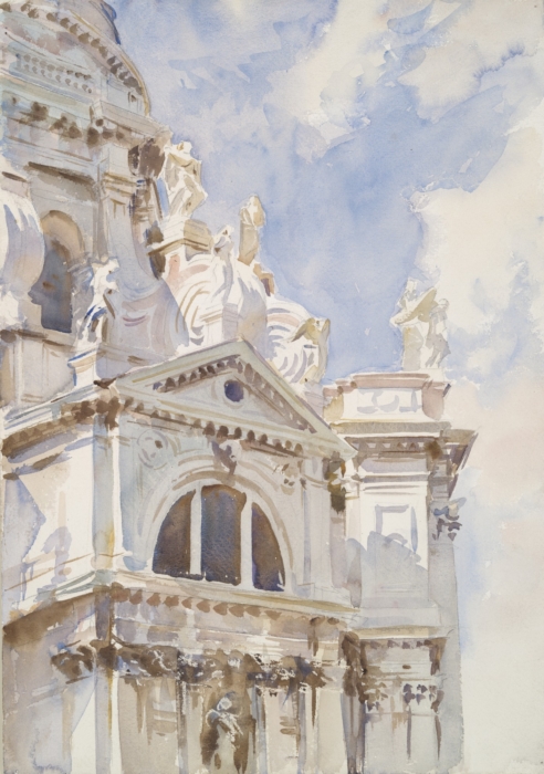 The votive church of Santa Maria della Salute is familiar to anyone who has visited Venice. Visible from the Piazza S. Marco, clad in shimmering white Istrian stone, the church dazzles the eye — in sun or in rain, S. Maria della Salute shimmers, opalescent, lit from above and below.